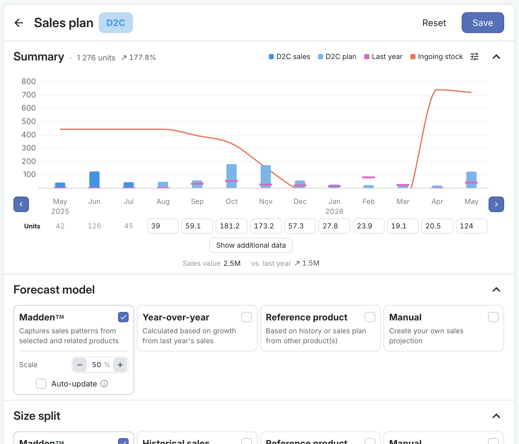 Learn how to set a sales plan with the right forecast, size split, and (optionally) segment split.