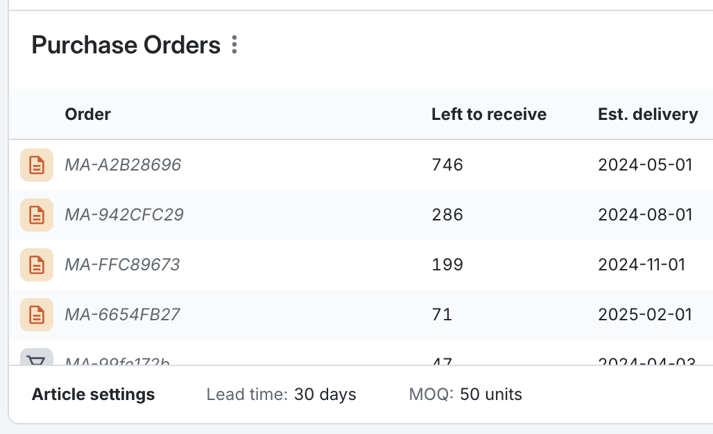 The optimization algorithm takes into account individual product settings, such as MOQ and Lead Time, even when planning a large group, ensuring the suggestion is accurate for every variant within the selected time period.